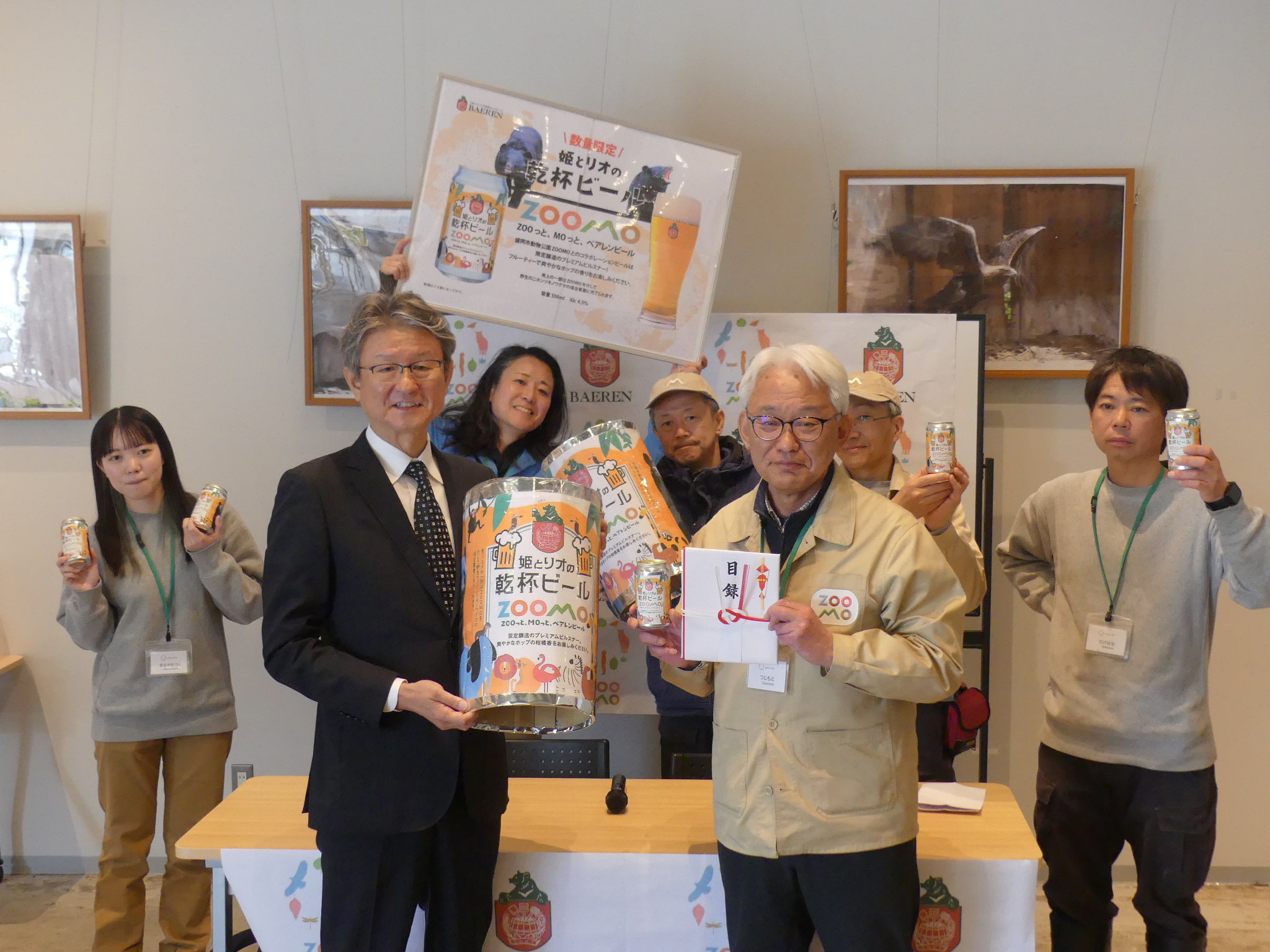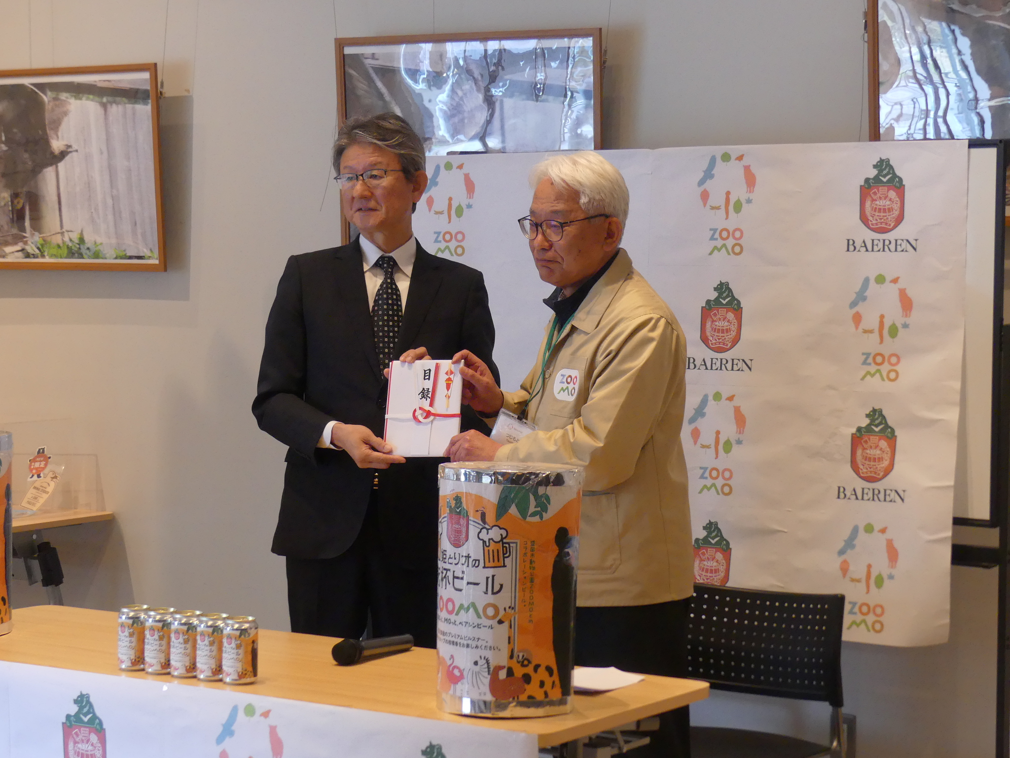 株式会社ベアレン醸造所(盛岡市北山 代表取締役社長 嶌田洋一)様より、2024年(令和6年)に発売されたコラボビール「ベアレン 姫とリオの乾杯ビール」の売上の一部を、盛岡市動物公園ZOOMO(盛岡市新庄 園長 辻本恒徳)に寄付していただき、寄付金の贈呈式を執り行いました。