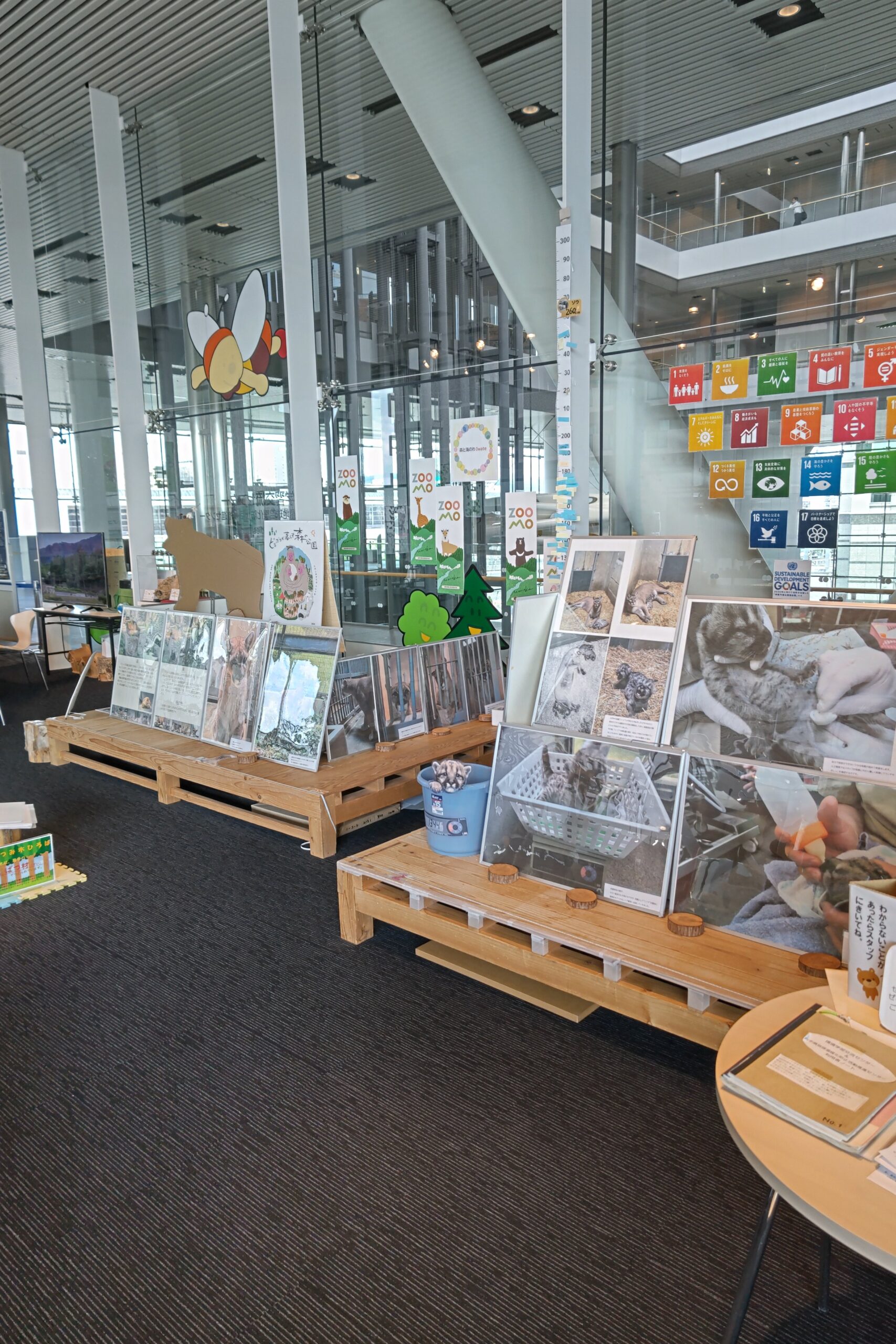 盛岡市動物公園ZOOMOは、“森と海のわ Iwate”の活動として、生物多様性、陸の動物の豊かさを護る活動の一環で、アイーナ いわて県民情報交流センター5階の環境学習交流センター内に年間通してZOOMOブースを設置し、写真や剥製などを展示し、情報発信と普及啓発を行っています。