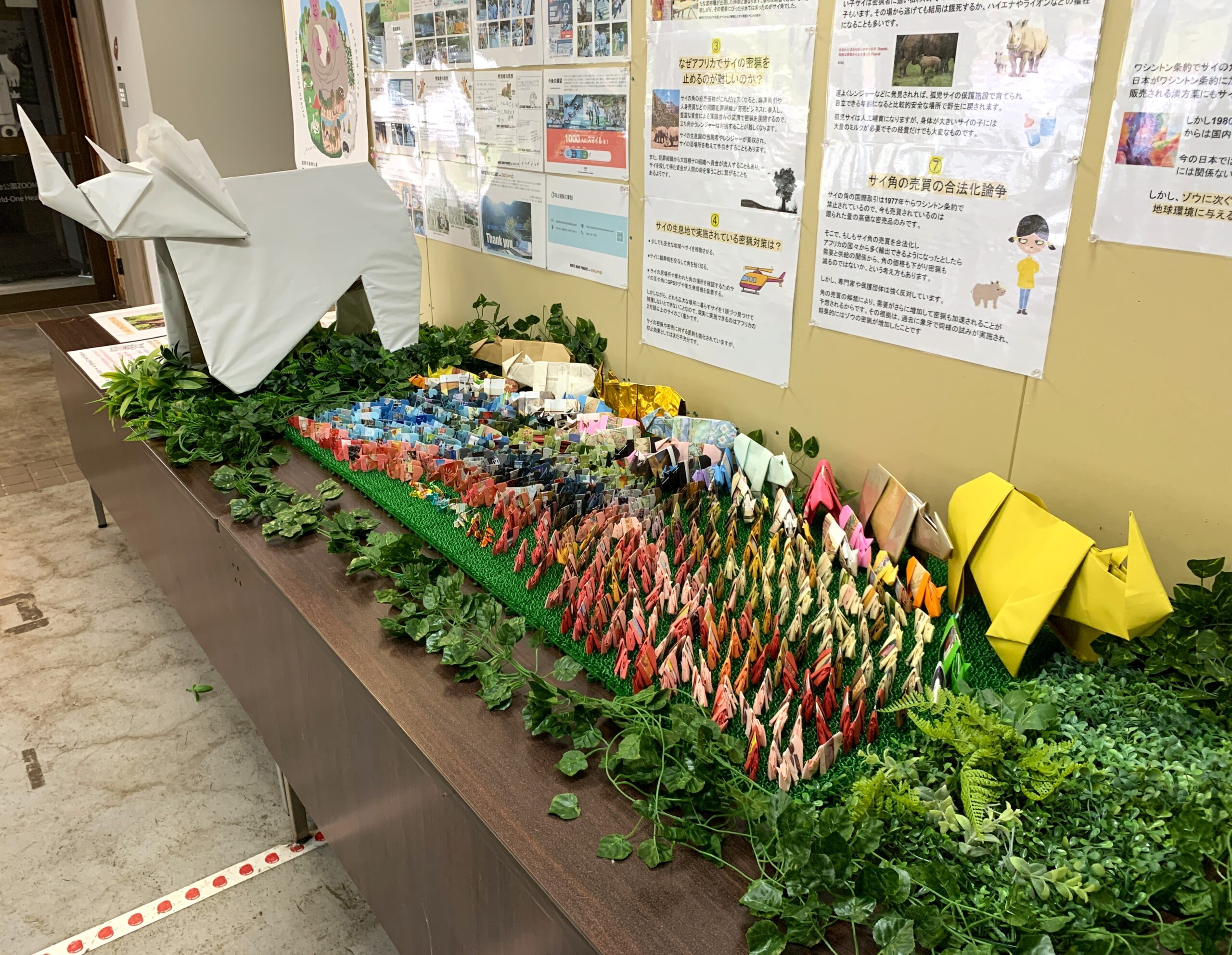 このイベントに合わせ、クロサイ展示場近くのサバンナエリアレストハウスでは「世界サイの日特別展示 サイだらけ」を開催しています。また認定特定非営利活動法人アフリカゾウの涙と協働し、2024年に亡くなったサイの数が一目でわかる折り紙による普及啓発も行います。