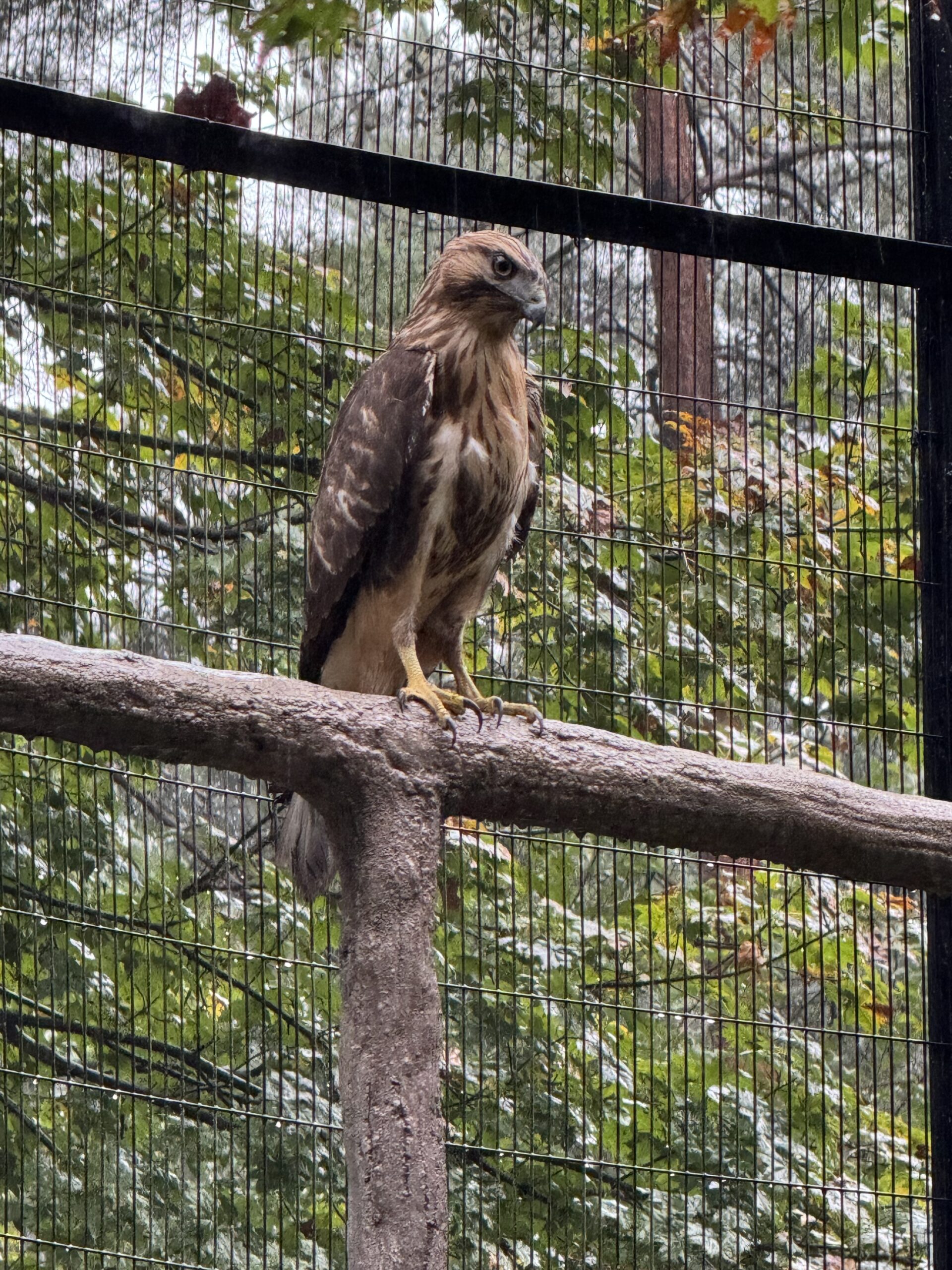 ノスリは岩手県鳥獣保護センターより9月10日(水)に来園し、検疫終了後の10月15日(木)より展示練習を開始し、旧イヌワシ舎にて展示しております。身近な猛禽類の中で日本の伝説、童謡、ことわざなどに幅広く用いられているトビに次ぐノスリを展示するのは2011年以来14年ぶりです。