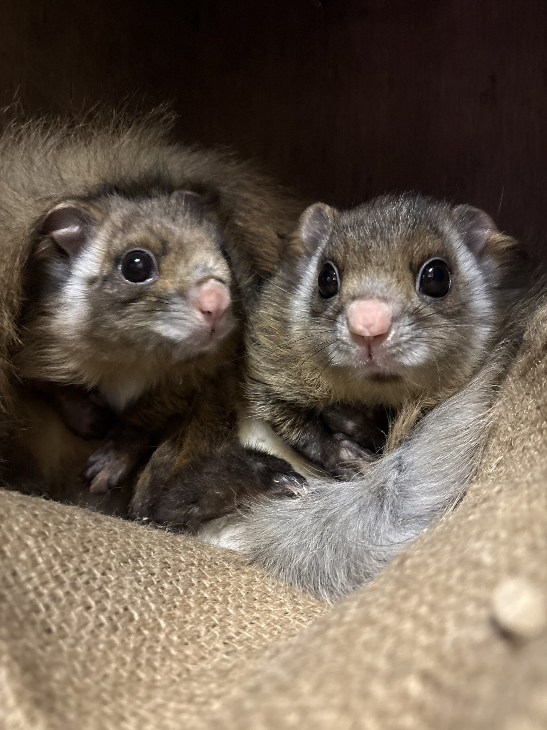 当園では、2002年に初めてムササビが保護されて以降、15頭を飼育してきました。そしてそのほとんどが県内で保護された個体です。当園の飼育動物の中には、自然界での怪我等が原因で野生復帰が難しく、ZOOMOで終生飼育となった個体も多くいます。動物園として、保護された野生動物たちが置かれている状況や保護された経緯について多くの方に知っていただくことも大切な役割です。今回来園した2頭も、石川県で保護された個体です。山から街におりてくる動物たちがなぜ増えているのか、事故に遭ってしまう動物たちを減らすことはできないのか、私たちと動物たちの暮らしはつながっているということを2頭の姿を通して知っていただきたいと思っています。