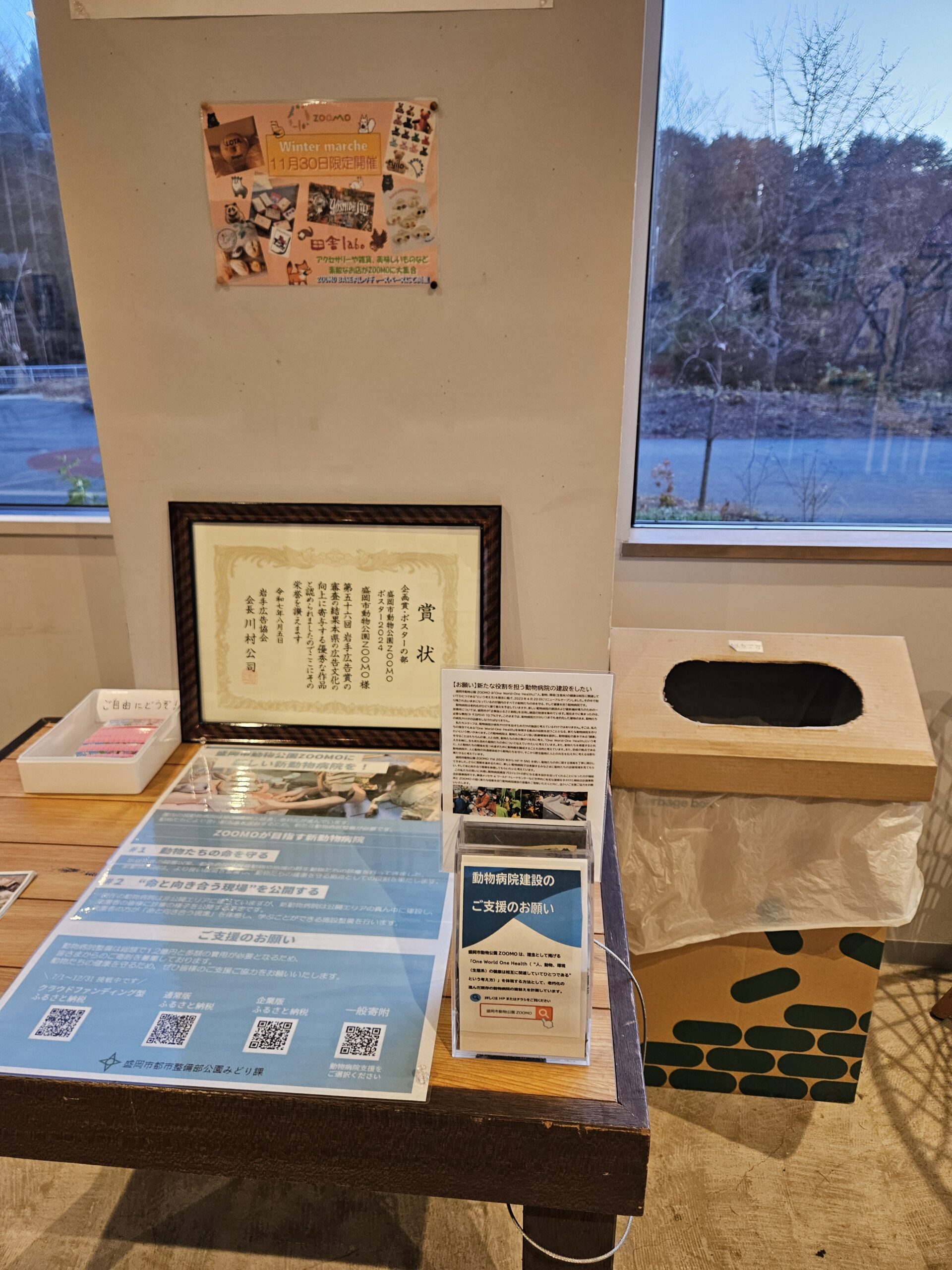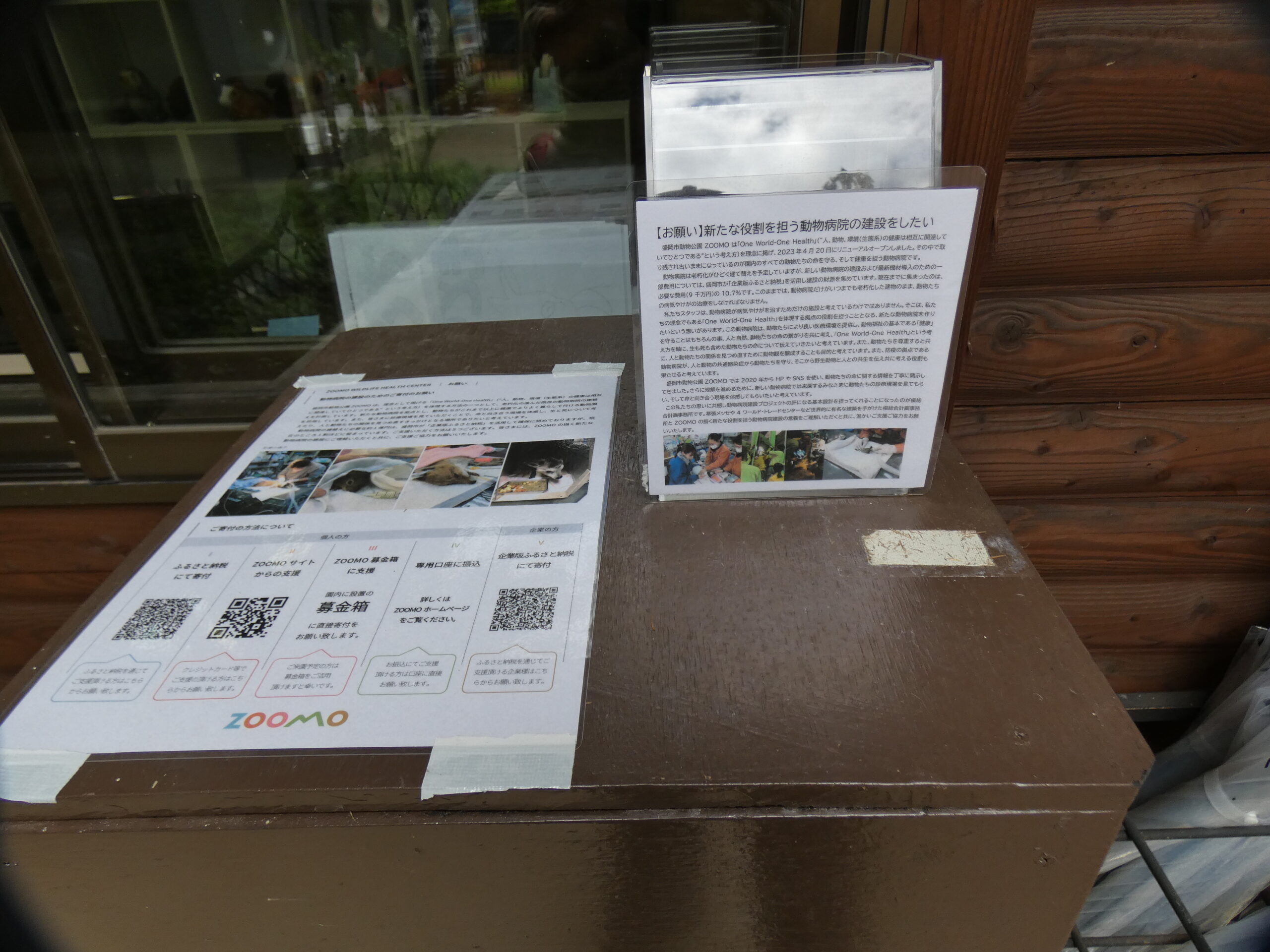 園内3か所(ZOOMOBASE入口、券売所、FARM INFO)に新動物病院建設のための募金箱を設置しています。1円からご支援が可能です。