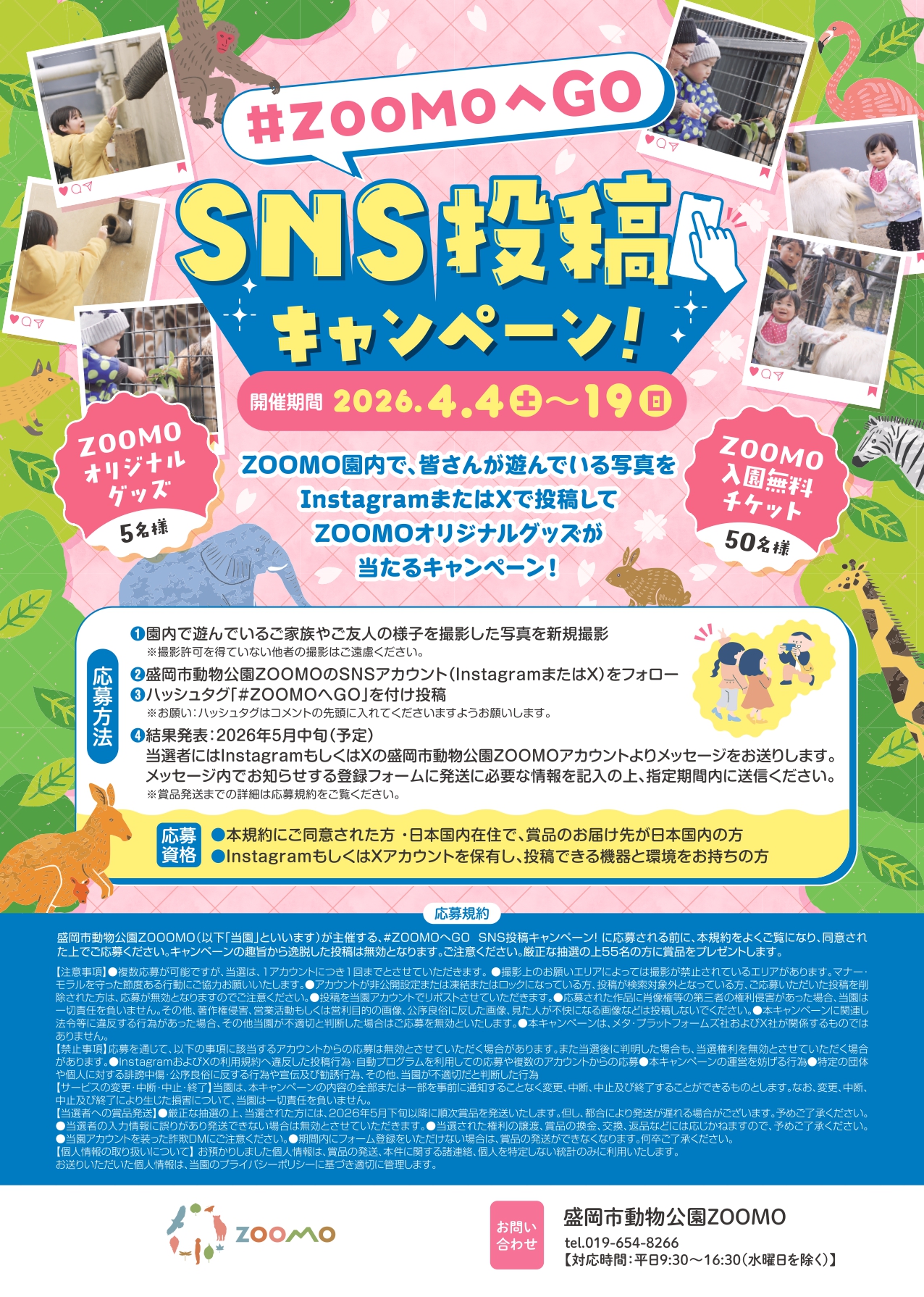 また、ZOOMOの園内で皆さんが遊んでいる写真をInstagramまたはXで投稿するとZOOMOオリジナルグッズなどが当たるSNS投稿キャンペーンも同時開催します。詳細は下記をご覧ください。