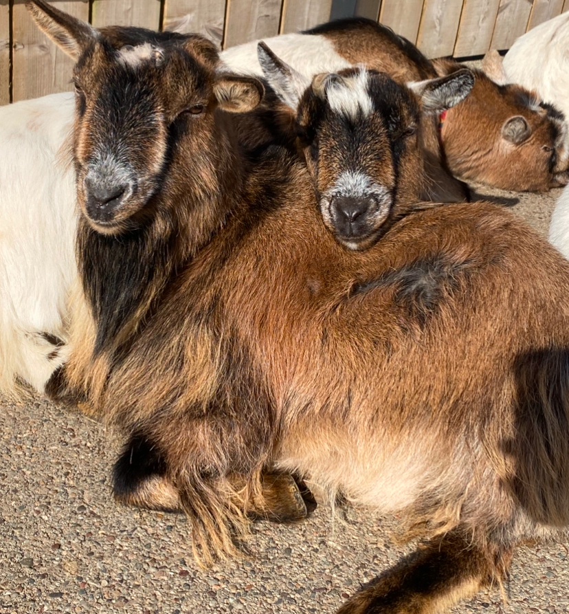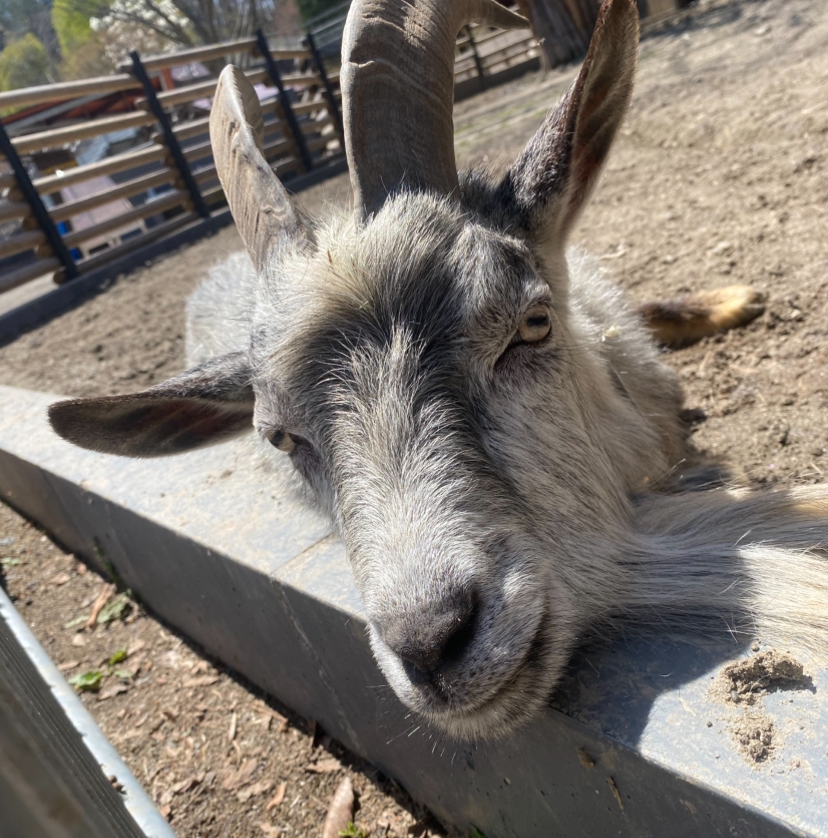 ピグミーゴートは偶蹄目ウシ科の動物でミニヤギの一種です。ミニヤギとはヤギの仲間の中でも小さい品種を表す言葉です。草食性で、植物でさえあれば種類も部位も気にせず食べてしまいます。除草のために飼う人もいるくらい食いしん坊で、1日の大半を食事に費やします。四肢が短く、足もそれほど速くないですが、優れたジャンプ力を持ちます。ZOOMOには110cmを軽々ジャンプする個体もいます。ピグミーゴートのメスは、1才になる前に繁殖が可能になります。これは哺乳類としてはかなりの早さです。繁殖期も20日おきに数日と非常に短く、妊娠期間も5か月で、1度に1~3頭の子どもが生まれます。